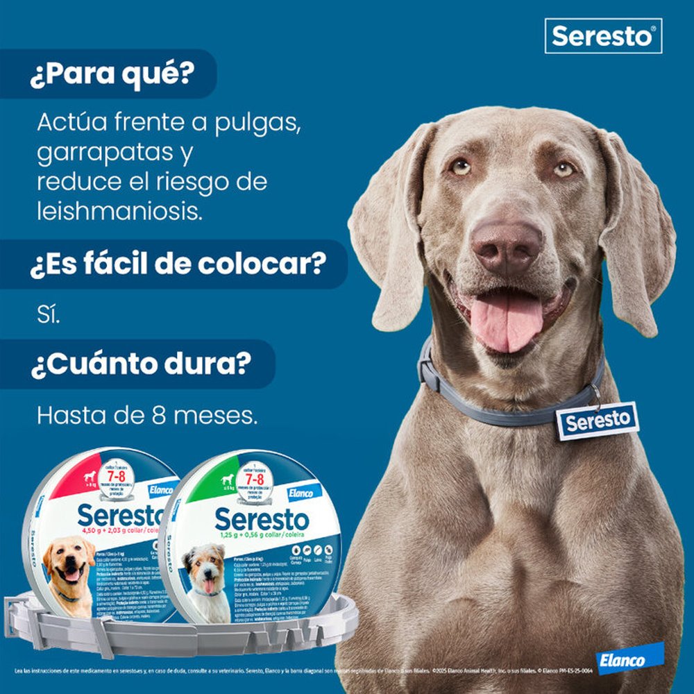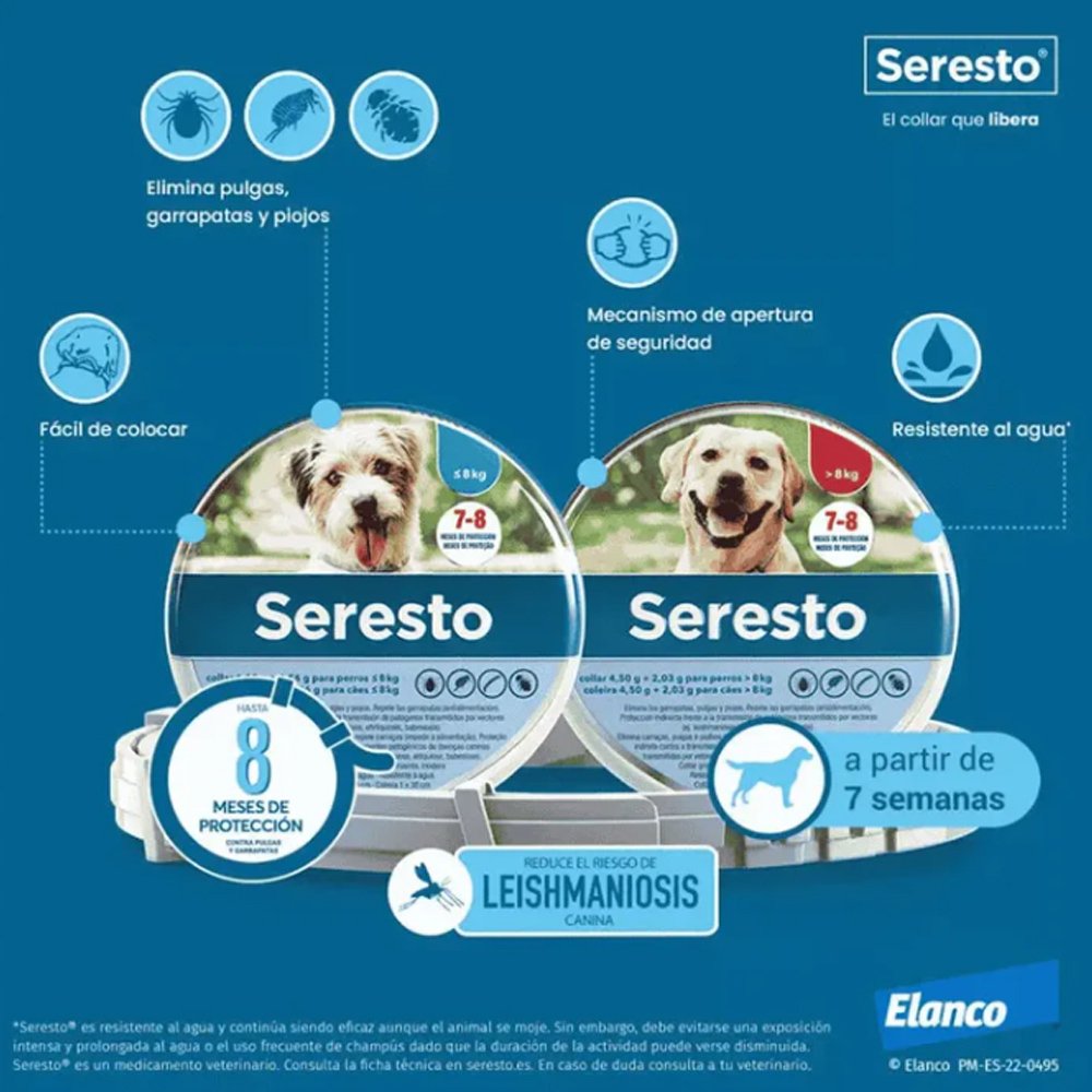 Más información y fichas tecnicas en https://mimascotayyo.elanco.com/es/nuestros-productos/seresto/seresto-perros